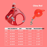 Breathable Vest Harness with Reflective Stitching and Walking Chain Lead